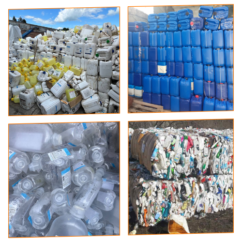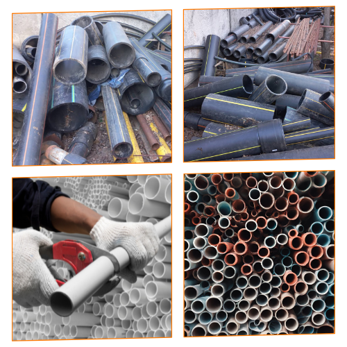 відходи ПНД, такі як труби, каністри для побутової хімії, ящики, іграшки, ємності для літніх душів та септиків.